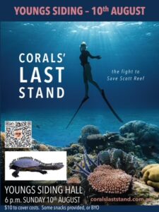 « All Events This event has passed. Corals’ Last Stand August 10 @ 6:00 pm - 7:00 pm « Mums & Bubs Art Class Life Drawing » Add to calendar Google Calendar iCalendar Outlook 365 Outlook Live Details Date: August 10 Time: 6:00 pm - 7:00 pm Event Categories: Awareness, Child-friendly, Community Event, Discover Denmark, Education, Entertainment, Environmental, Families, Fundraiser, Information Sessions, Social Event Venue Youngs Siding Hall Youngs Siding Youngs Siding, WA 6330 Australia + Google Map Related Events Swing Dance Party December 13 @ 6:00 pm - 9:00 pm Mingle with Singles December 13 @ 6:30 pm - 10:00 pm Where am I this time? December 14 @ 11:00 am - 1:00 pm