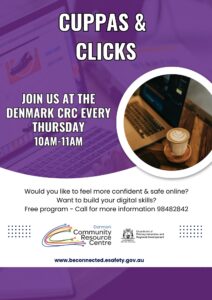 « All Events Event Series: Cuppas & Clicks Cuppas & Clicks January 15 @ 10:00 am - 11:00 am « Life Drawing Classes Chess » Add to calendar Google Calendar iCalendar Outlook 365 Outlook Live Details Date: January 15 Time: 10:00 am - 11:00 am Series: Cuppas & Clicks Event Categories: Be Connected, Classes, Community Event, Education, Free, Information Sessions, Networking, Older Australians Venue Denmark CRC 2 Strickland St Denmark, WA 6333 Australia + Google Map Phone 9848 2842 View Venue Website Related Events Life Drawing January 14 @ 5:30 am - 7:30 pm The Hangout January 14 @ 8:00 am - 5:00 pm Circus & Aerials Workshop January 14 @ 10:30 am - 3:30 pm