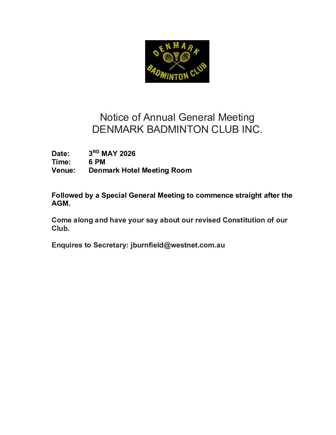 « All Events Denmark Badminton May 3 @ 6:00 pm - 8:00 pm « Mahayana Buddhist Meditations Embroidery Club » Denmark flyer for newsletter Add to calendar Google Calendar iCalendar Outlook 365 Outlook Live Details Date: May 3 Time: 6:00 pm - 8:00 pm