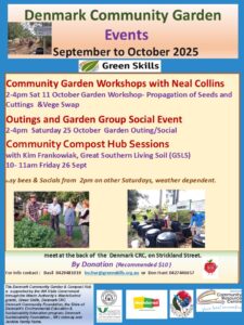 « All Events This event has passed. Event Series: Denmark Community Garden Events Denmark Community Garden Events October 25 @ 2:00 pm - 4:00 pm « Golden Hill Steiner Markets Dave Rastrix & Friends » Add to calendar Google Calendar iCalendar Outlook 365 Outlook Live Details Date: October 25 Time: 2:00 pm - 4:00 pm Series: Denmark Community Garden Events Event Categories: Classes, Community Event, Discover Denmark, Education, Exercise, Food, Gardening, Health, Information Sessions, Wellness, Workshop Venue Denmark Community Garden at rear of CRC 2a Strickland Street Denmark, Western Australia 6333 Australia + Google Map Related Events Green Skills Denmark Community Garden December 6 @ 3:00 pm - 5:00 pm Christmas Choir Concert December 6 @ 7:00 pm - 8:30 pm Pen & Possibility Creative Writing Workshop December 9 @ 10:00 am - 12:00 pm