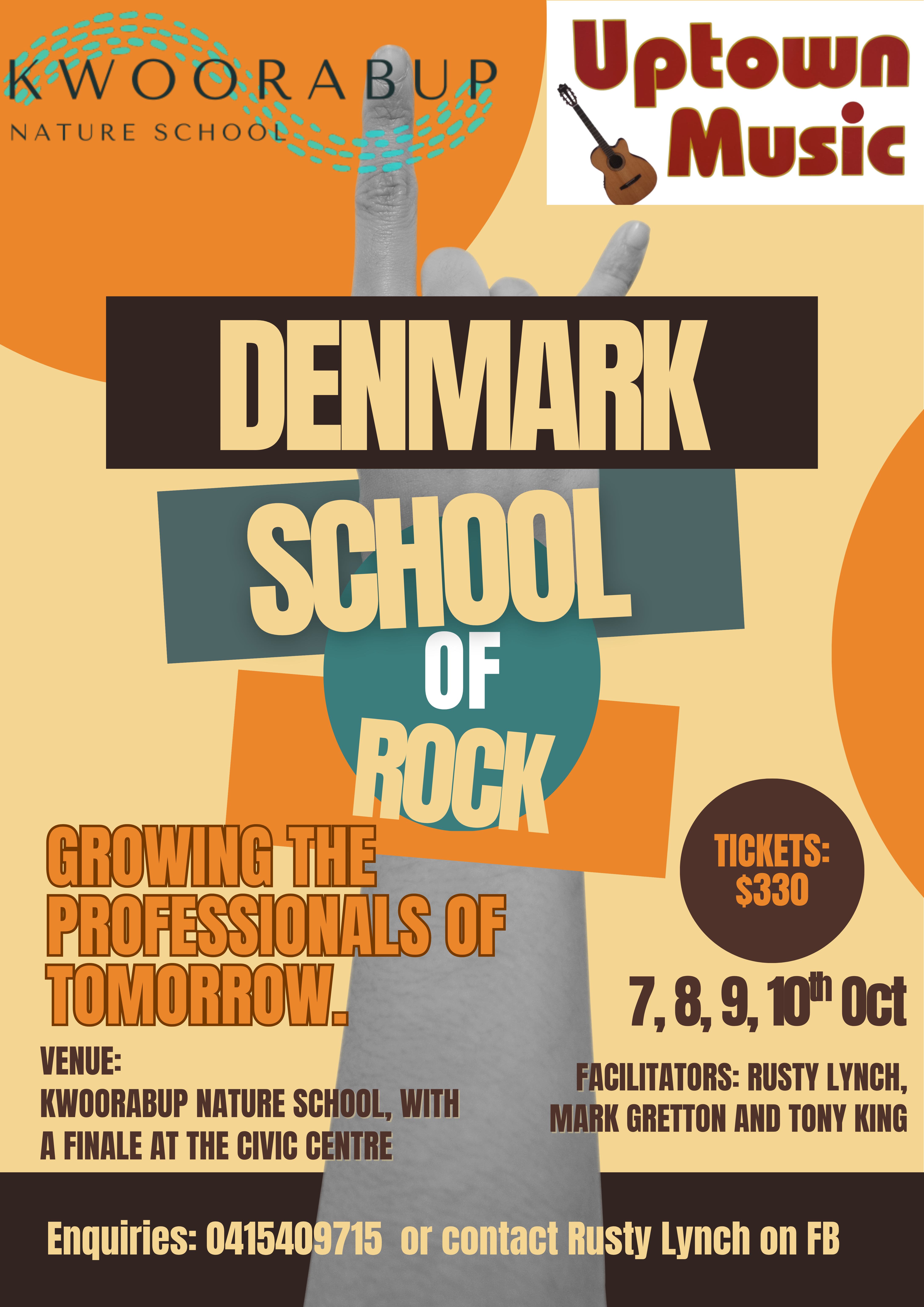 « All Events This event has passed. Denmark School of Rock October 7 @ 8:00 am - October 10 @ 5:00 pm « Colour & Canvas at Clarence Estate Denmark School of Rock » https://denmarkcrc.com.au/wp-content/uploads/2025/07/Denmark-School-of-Rock-poster-2025.png Add to calendar Google Calendar iCalendar Outlook 365 Outlook Live Details Start: October 7 @ 8:00 am End: October 10 @ 5:00 pm Event Categories: Art, Bookings essential, Child-friendly, Classes, Community Event, Discover Denmark, Education, Entertainment, Families, Family, Kids, Music, Networking, School Holidays Venue Kwoorabup Nature School 2A Inlet Dr Denmark, WA 6333 Australia + Google Map Phone 9848 2285 Related Events Where am I this time? December 14 @ 11:00 am - 1:00 pm A Feast of Miracles December 14 @ 5:00 pm - 8:00 pm Denmark Death Cafe December 15 @ 1:00 pm - 3:00 pm