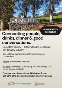 « All Events Mingle with Singles January 16 @ 5:30 pm - 9:00 pm « Happy Plate The Nomadics » Add to calendar Google Calendar iCalendar Outlook 365 Outlook Live Details Date: January 16 Time: 5:30 pm - 9:00 pm Event Categories: Be Connected, Community Event, Dance, Entertainment, Food, Free, Men, Mental Health, Music, Networking, Women Venue Rockcliffe Winery 18 Hamilton Road Scotsdale, WA Australia + Google Map Related Events Denmark Summer Early Music Workshop January 11 @ 8:00 am - January 16 @ 5:00 pm Dream Big Theatre Workshop January 12 @ 8:00 am - 5:00 pm The Bone Bus January 13 @ 9:00 am - January 17 @ 4:00 pm
