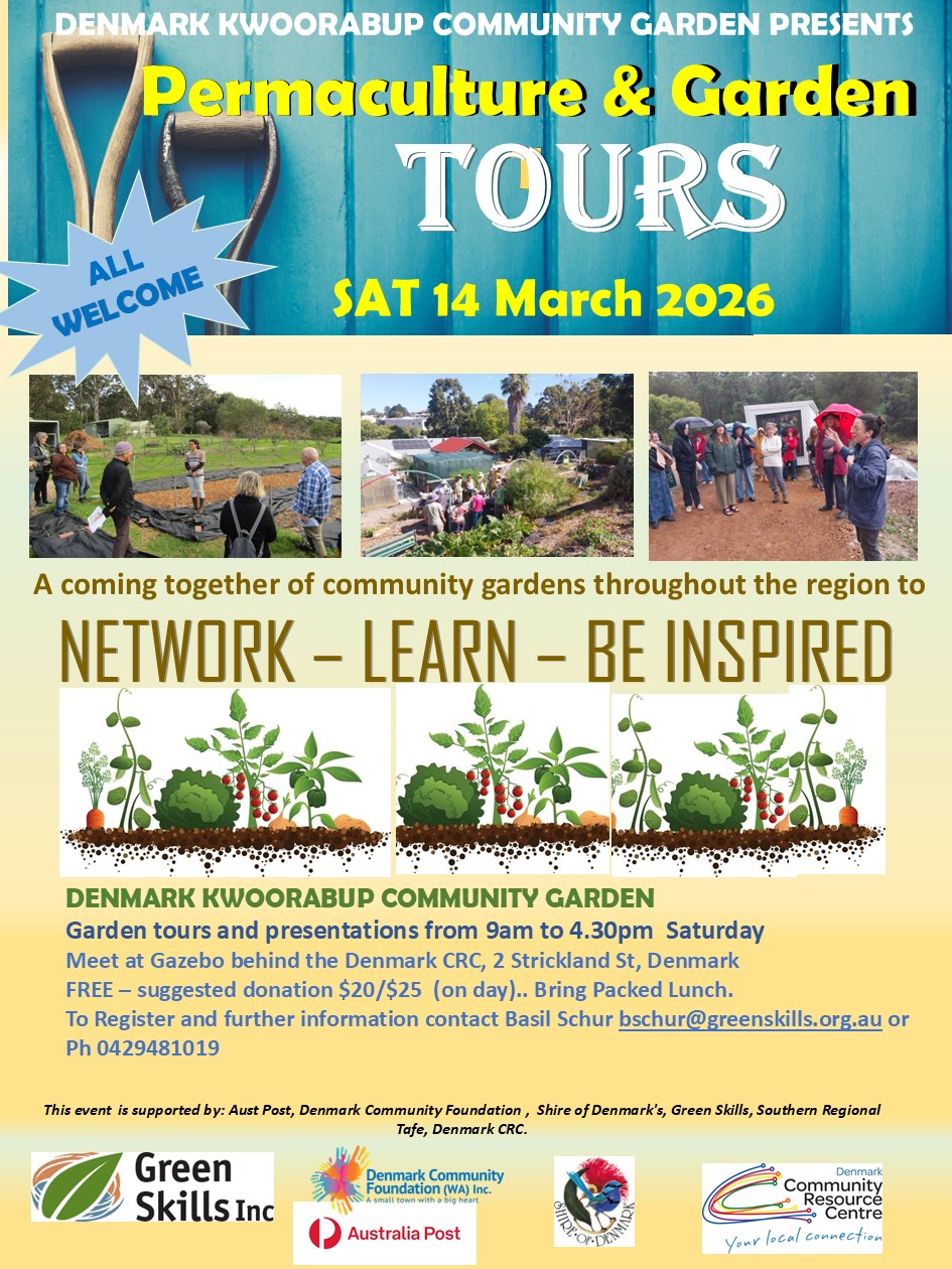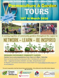 « All Events Permaculture & Garden Tours March 14 @ 9:00 am - 4:30 pm « Happy Plate Art Exhibition – Wendy Binks – Elephant Dreaming » Add to calendar Google Calendar iCalendar Outlook 365 Outlook Live Details Date: March 14 Time: 9:00 am - 4:30 pm Event Categories: Be Connected, Classes, Community Event, Education, Information Sessions, Social Event, Workshop Venue Denmark Community Garden at rear of CRC 2a Strickland Street Denmark, Western Australia 6333 Australia + Google Map Related Events Seniors Activities March 6 @ 10:00 am - 12:00 pm Golden Hill Steiner Markets March 6 @ 2:45 pm - 4:45 pm Golden Hill Steiner Markets March 6 @ 2:45 pm - 4:45 pm