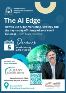 « All Events This event has passed. The AI Edge – Albany Business Centre November 5 @ 5:30 pm - 7:30 pm « The Hangout Volunteering Roadshow » Add to calendar Google Calendar iCalendar Outlook 365 Outlook Live Details Date: November 5 Time: 5:30 pm - 7:30 pm Event Categories: Awareness, Be Connected, Bookings essential, Classes, Education, Information Sessions, Workshop Venue Denmark CRC 2 Strickland St Denmark, WA 6333 Australia + Google Map Phone 9848 2842 View Venue Website Related Events Green Skills Denmark Community Garden December 6 @ 3:00 pm - 5:00 pm Christmas Choir Concert December 6 @ 7:00 pm - 8:30 pm Pen & Possibility Creative Writing Workshop December 9 @ 10:00 am - 12:00 pm