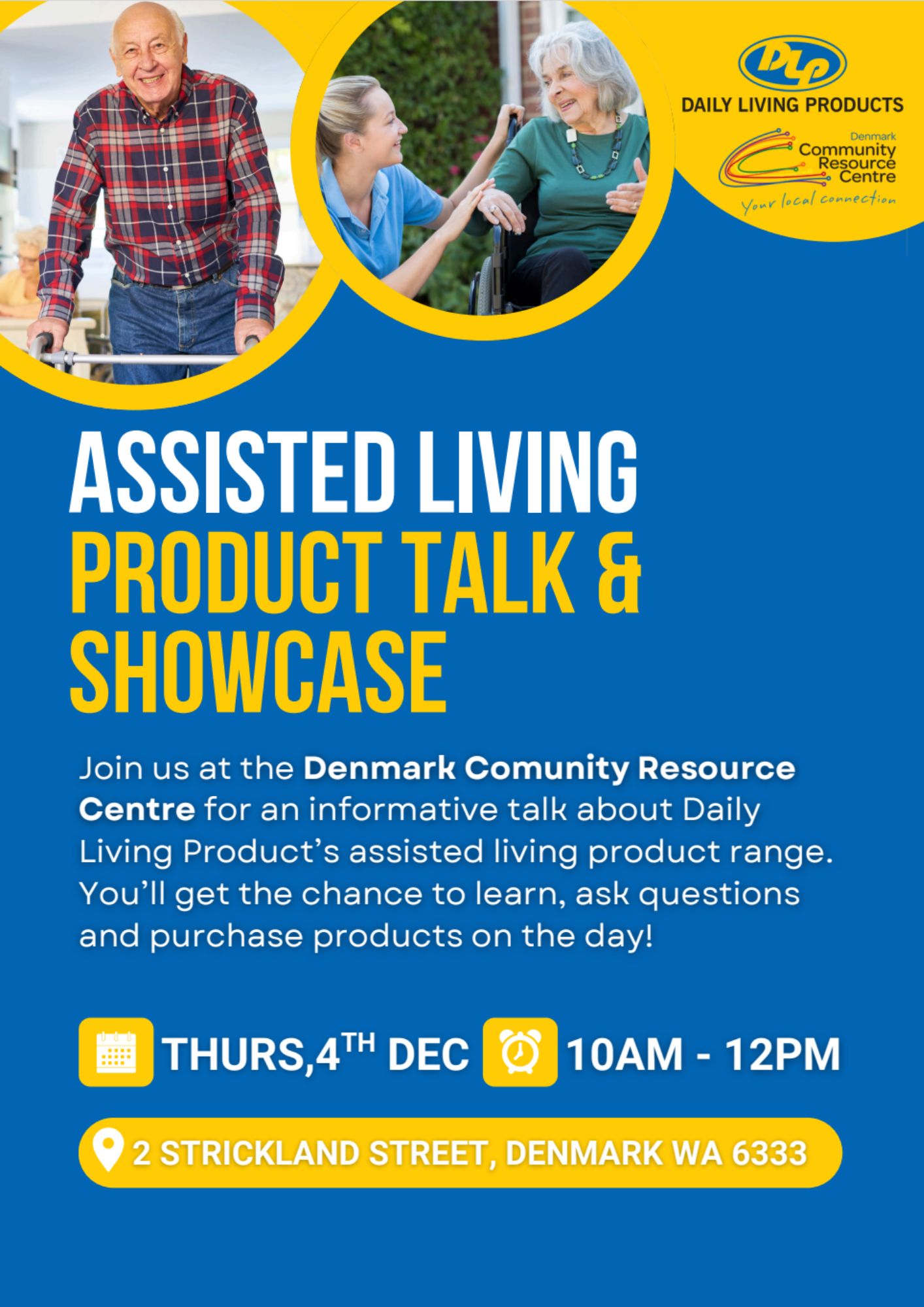 Denmark CRC 2 Strickland St, Denmark, WA, AustraliaAssisted Living Product Talk & ShowcaseAssisted Living Product Talk & Showcase