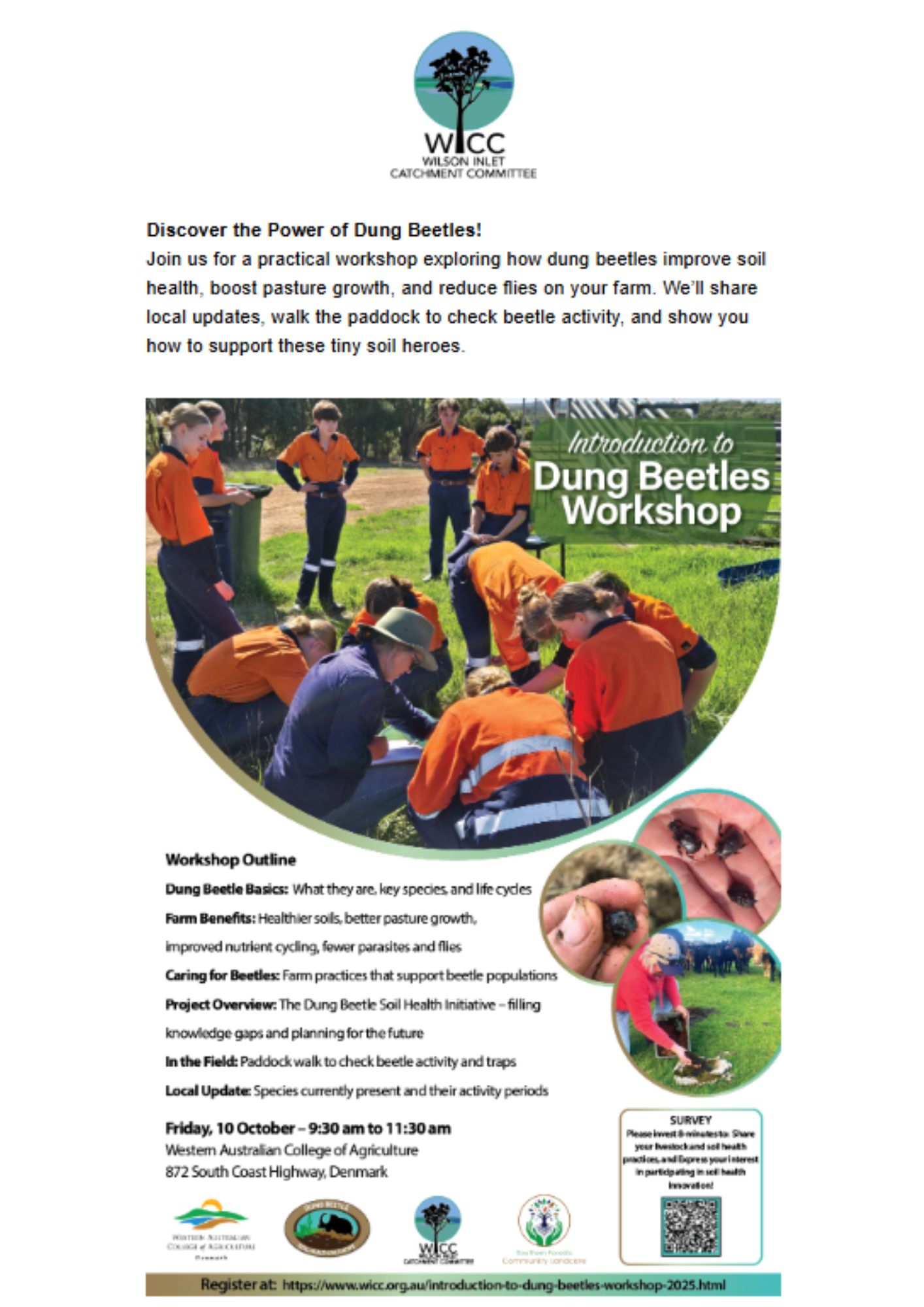 WA College of Agriculture Denmark 872 South Coast Hwy, Denmark, WA, AustraliaFREE EVENTS 2024 Feed your soil not your plants! Presented by Great Southern Living Soil As part of the Shire of Denmark's community-oriented Sustainability Environmental Education Program, this composting workshop will teach you how to turn your kitchen scraps and yard trimmings into a nutrient rich soil amendment teaming with essential microbes. You will also […]